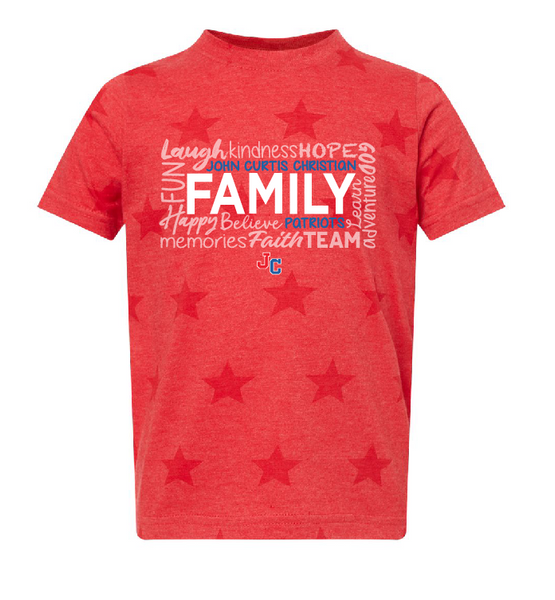 4.5 oz./yd², 60/40 combed ring-spun cotton/polyester vintage fine jersey printed star pattern